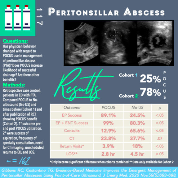 Ultrasound Gel Podcast, Journal Feed, and TamingtheSru highlight the UltraSquad’s study using POCUS for PTA diagnosis and drainage.